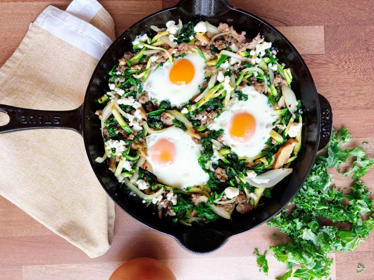 Traditional shakshuka originated in North Africa and is usually made with eggs poached in a spiced tomato sauce. This green shakshuka is a modern twist — swapping the tomato base for leafy greens, zucchini, and mushrooms. The result is lighter, fresher, and full of vibrant color while keeping the same comforting, one-pan cooking style people love.
